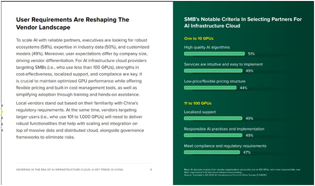 (数据来源:Forrester《Ushering In The Era Of AI Infrastructure Cloud:A Key Trend In China》报告,SMB选择AI基础设施云合作伙伴的显著标准)
