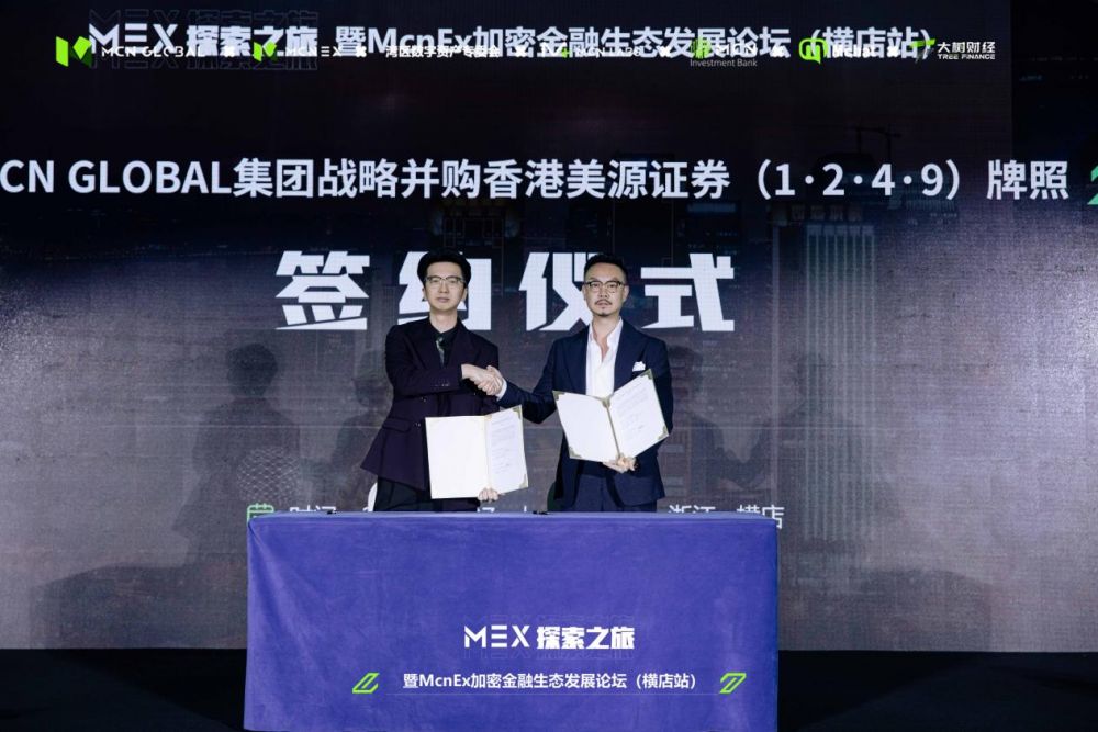 论坛现场迎来重磅时刻 ——MCN GLOBAL 与美源证券完成香港 1249 金融牌照签约。这一签约标志着 MCN GLOBAL 在合规化进程中迈出关键一步,为其在港股、美股等传统金融市场的布局与 RWA 资产的深度整合奠定了基础,也让 MEX 的生态价值边界进一步拓宽。