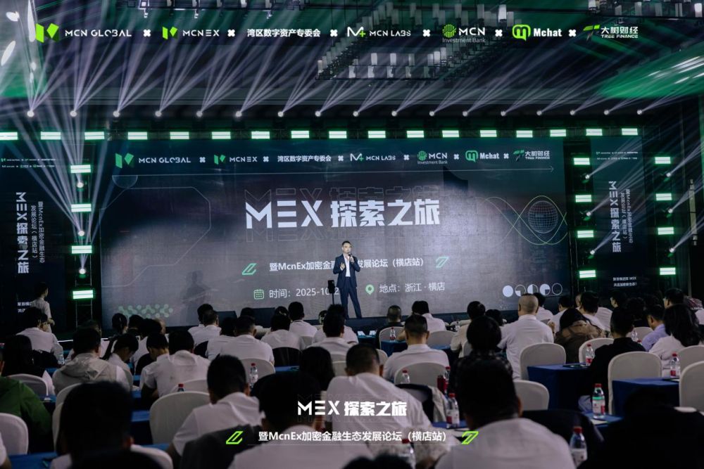 2025 年 10 月 27 日,“MEX 探索之旅暨 McnEx 加密金融生态发展论坛(横店站)”在浙江东阳市横店影视城?龙景雷迪森庄园酒店盛大举办。这场汇聚 MCN GLOBAL 集团核心团队、行业专家与生态伙伴的盛会,以“聚首横店探 MEX,共话加密新生态”为主题,全方位解码 MEX 价值逻辑与 McnEx 加密金融生态的发展蓝图,为现场嘉宾与线上观众呈现了一场兼具战略高度与实战价值的行业盛宴。